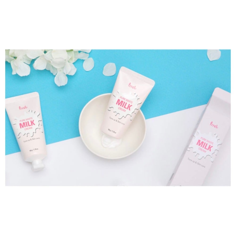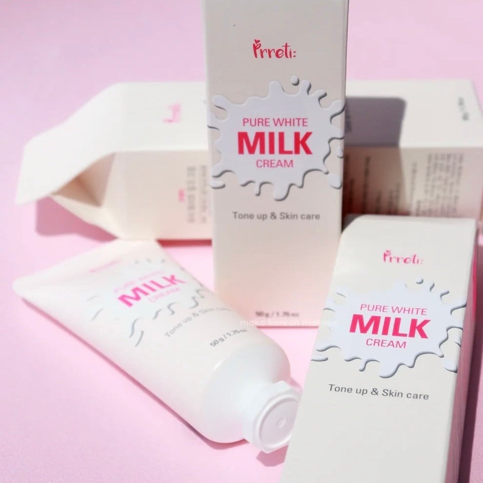 1. ضعي كريم الحليب الأبيض النقي في الخطوة الأخيرة من كريم الأساس للعناية بالبشرة.